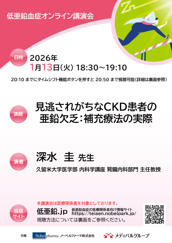 演題:見逃されがちなCKD患者の亜鉛欠乏:補充療法の実際